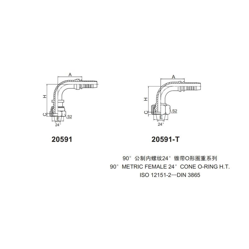 永華標(biāo)準(zhǔn)扣壓式接頭 20591和20591-T90公制內(nèi)螺紋 24錐帶O形圈重系列90 METRIC FEMALE 24 CONE O-RING H.T.ISO
